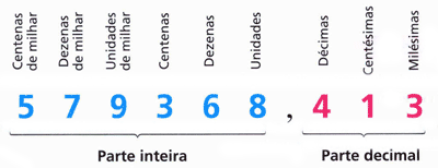 Nessa representação, verificamos que a vírgula separa a parte inteira da parte decimal.