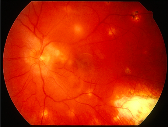 vasculitis retiniana fenomeno 1rio o 2rio adyacente a foco retinitis.