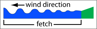 Fetch is the distance the wind travelled over seas to from waves.Greater the fetch,greater the wave energy is