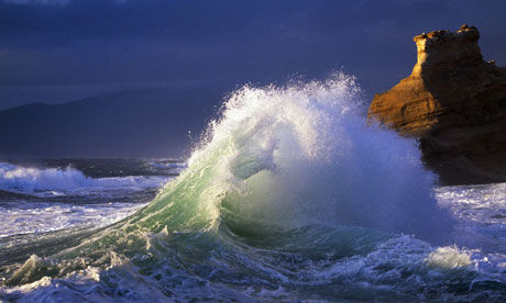 3)Base of wave stops;wave crest gets taller and topples over.This cause wave to break onto the coast,releasing energy