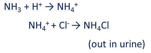 Kidneys (ammonia buffer) - more H+ excreted in urine (slow to respond!)