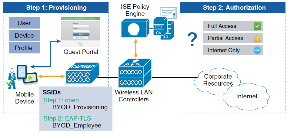 Permite conectar dispositivos personales a la red con políticas de seguridad sin asistencia TI