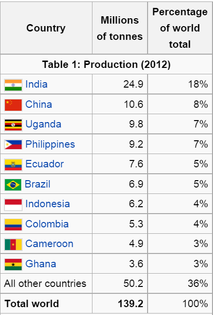 countries produce bananas as a staple