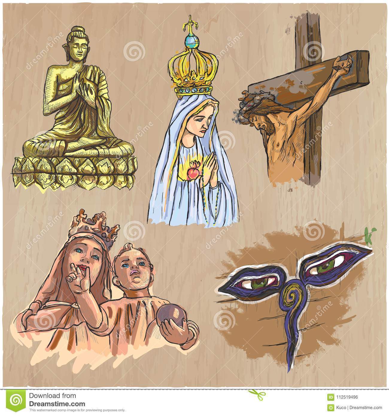 Religion Around World Hand Drawn Vector Hand Drawn Vector Collection Spirit Life Around World Religious Religion 112519496 (image/jpeg)