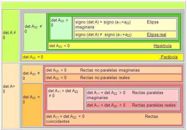 CLASIFICACIÓN DE LAS CÓNICAS: Existen ciertas cantidades asociadas a la matriz de la cónica que son