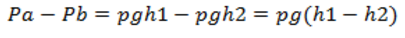 La diferencia de presión entre dos puntos A y B, de profundidades respectivas h1 y h2