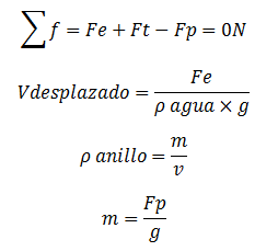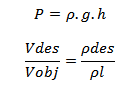 Donde: Vdes=Volumen desplazado, Vobj=Volumen del objeto, pl=desidad liquido, pdes= densidad liquido desplazado