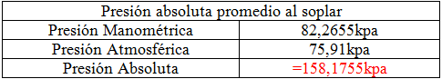 Determinación de presión absoluta promedio de soplido y succión