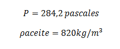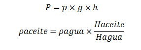 Hagua= 2,4cm Haceite=2,9cm Pagua=1000kg/m3