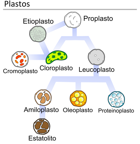 De todas las células eucariotas, únicamente las fotosintéticas presentan cloroplastos, unos orgánulos que usan la energía de la luz para impulsar la formación de ATP y NADPH, compuestos utilizados con posterioridad para el ensamblaje de azúcares y otros compuestos orgánicos. Al igual que las mitocondrias, cuentan con su propio ADN y se han originado a partir bacterias simbióticas intracelulares