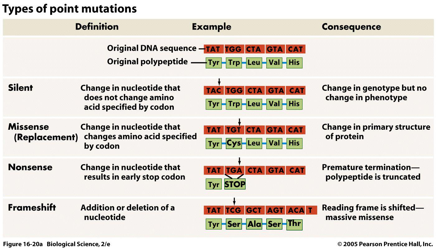 reading frame is shifted massive missense