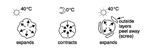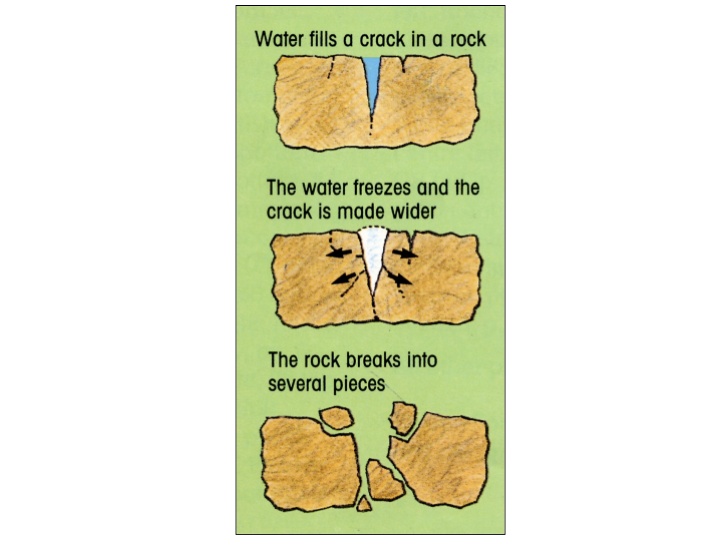 Step 2 - If the air temperature drops below freezing, the water will freeze and expand by 9-10 per cent putting pressure on the rock.