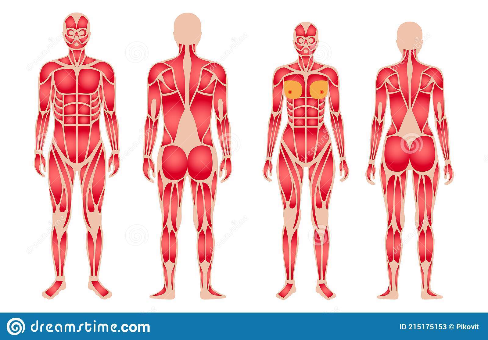 Human Muscular System Anatomical Poster Structure Muscle Groups Men Women Comparison Front Back View Bodybuilding 215175153 (image/jpeg)