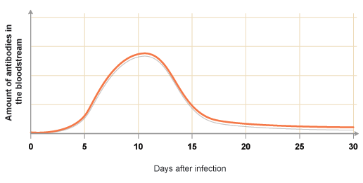 killed, the amount of antibodies goes down again. But some of the white blood cells that produce the