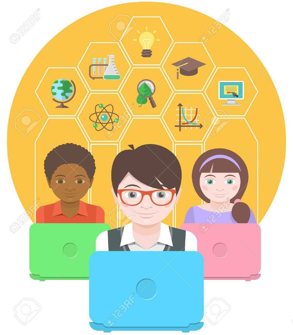 26450388 Ilustración Plana Conceptual De La Educación Moderna De Los Niños Mediante El Uso De Computadoras (image/jpeg)