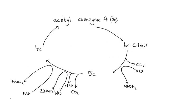After these reactions, the acetate fragment is broken down and the remaining 4-C residue