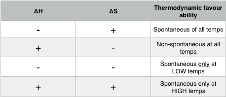 - : thermodynamically favoured (spontaneous)