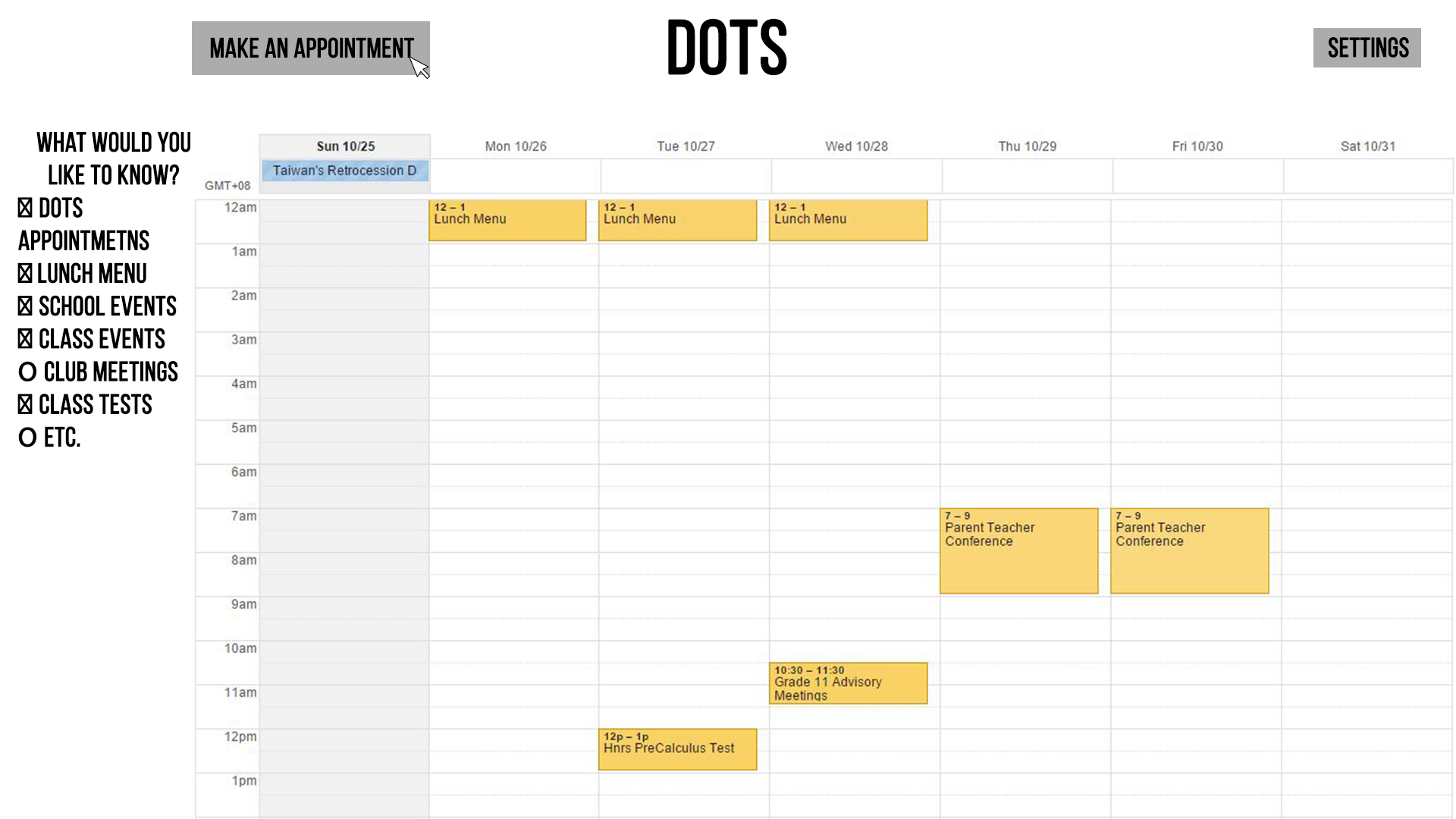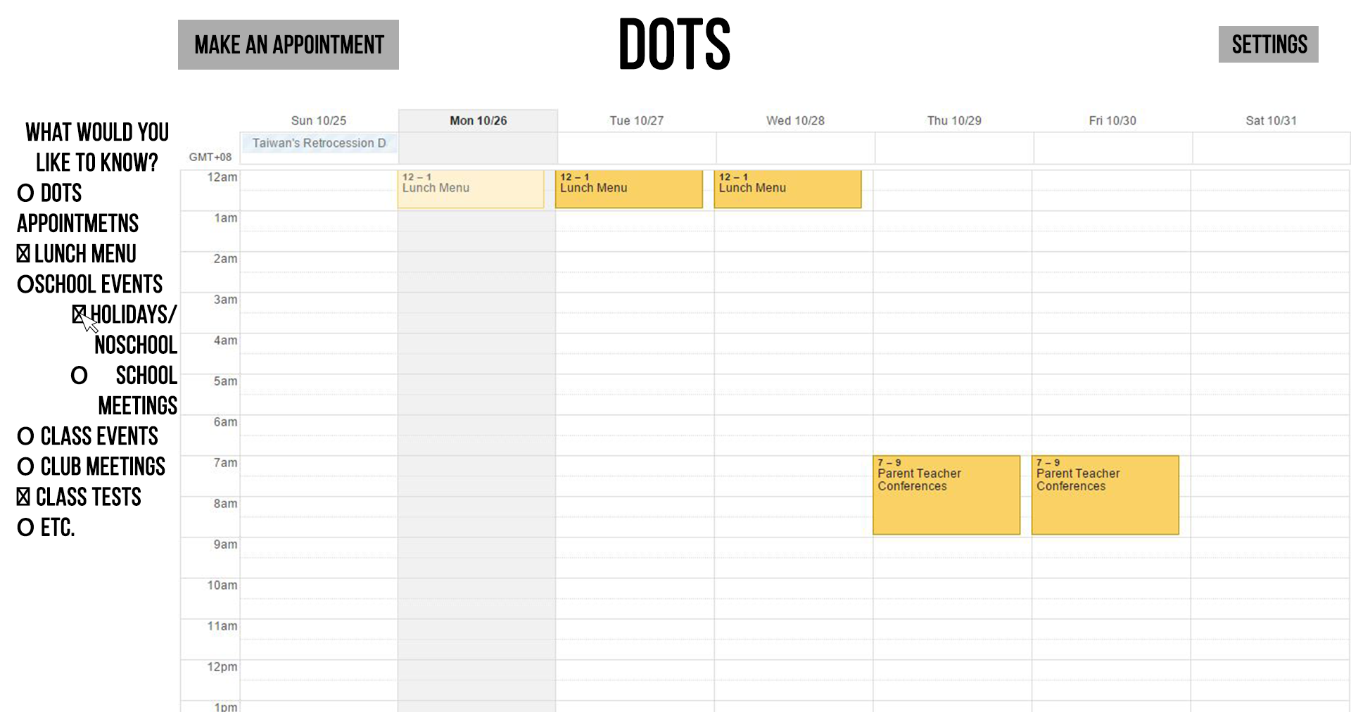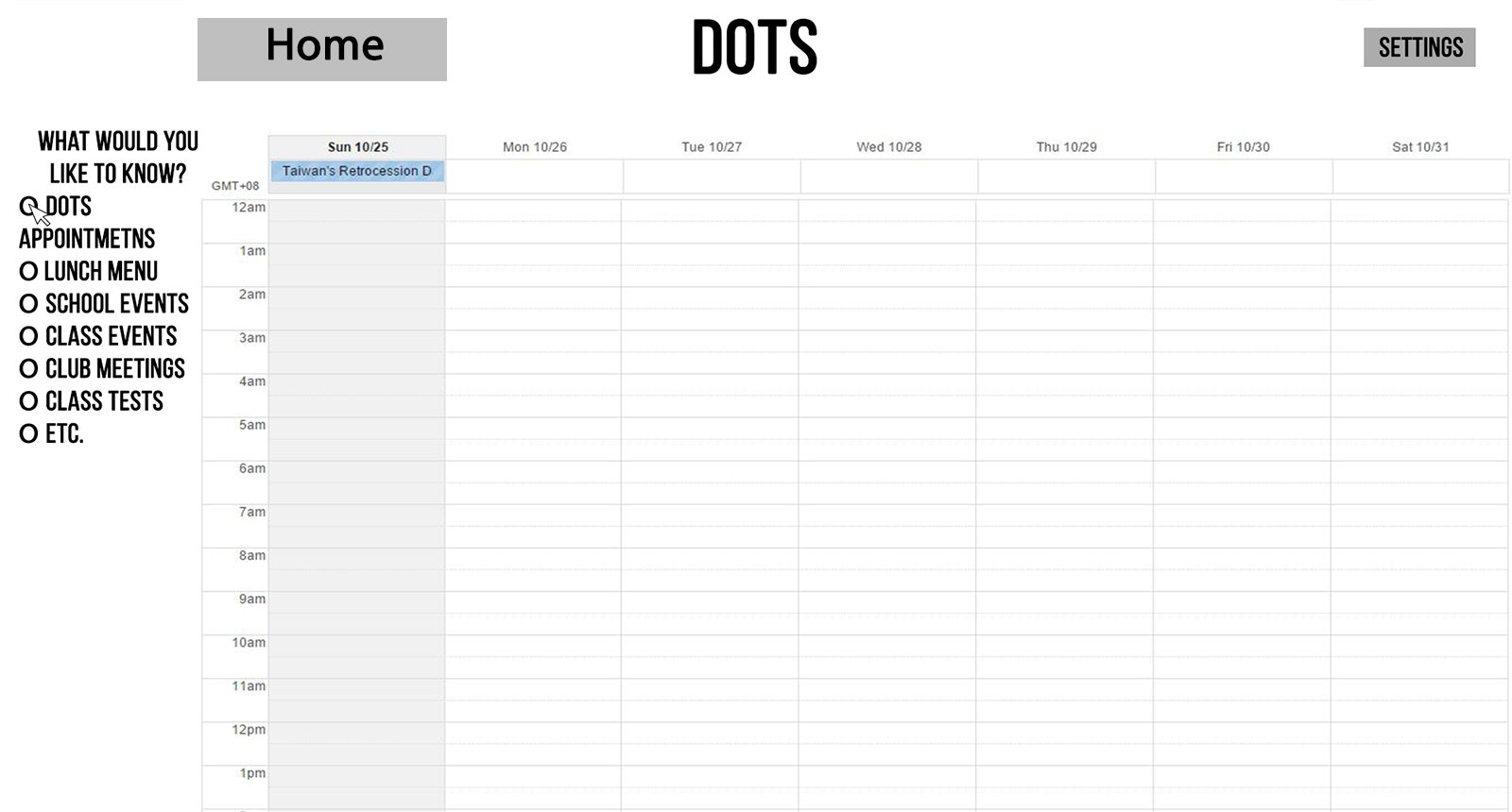 Click on dots logo... do we send them to the calendar or the dots page???