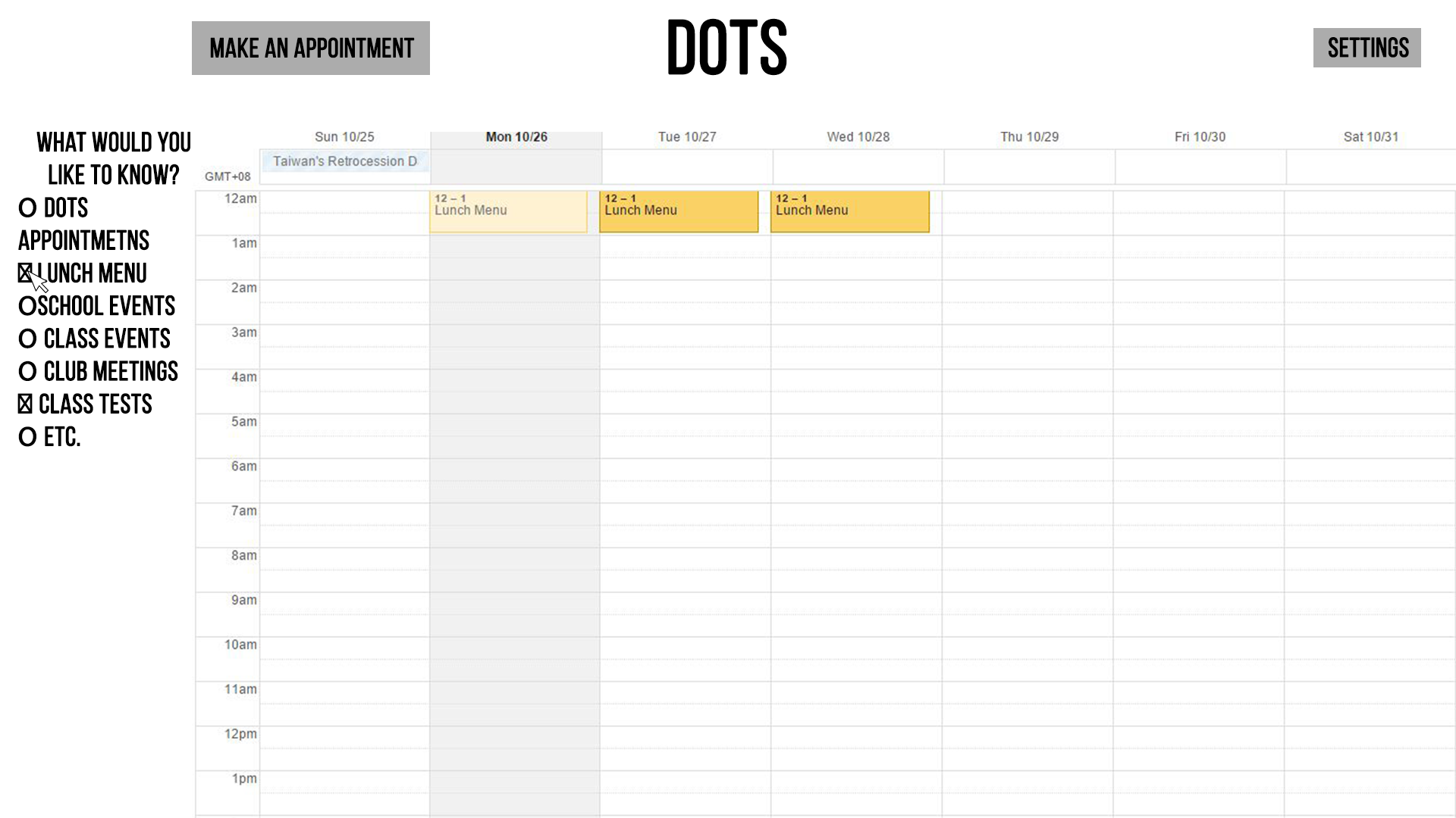 Example: clicking on lunch menu --> shows