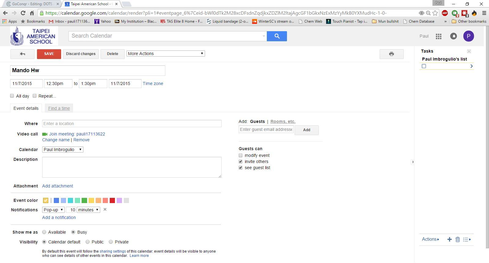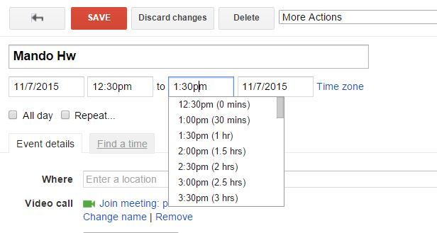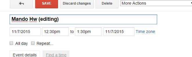 Other possible things to edit: Color, invite others, location and notifications