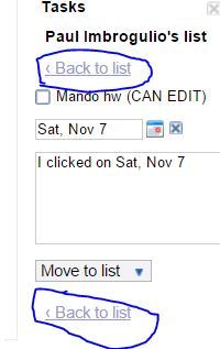 Returning to task list