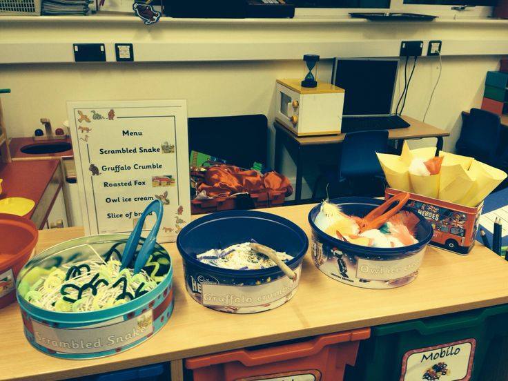 Mud kitchen: - making correct number of meals for characters - size of plates for characters