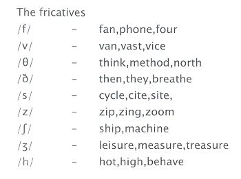 fricatives in English: