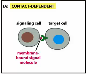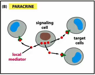 A cell excretes ligand which effects neiighbouring cells as it spreads out by diffusion