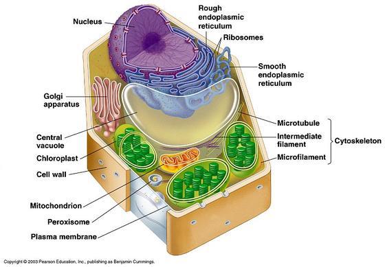 1) Chloroplast: controls chlorophyll to help cell trap light to make food.