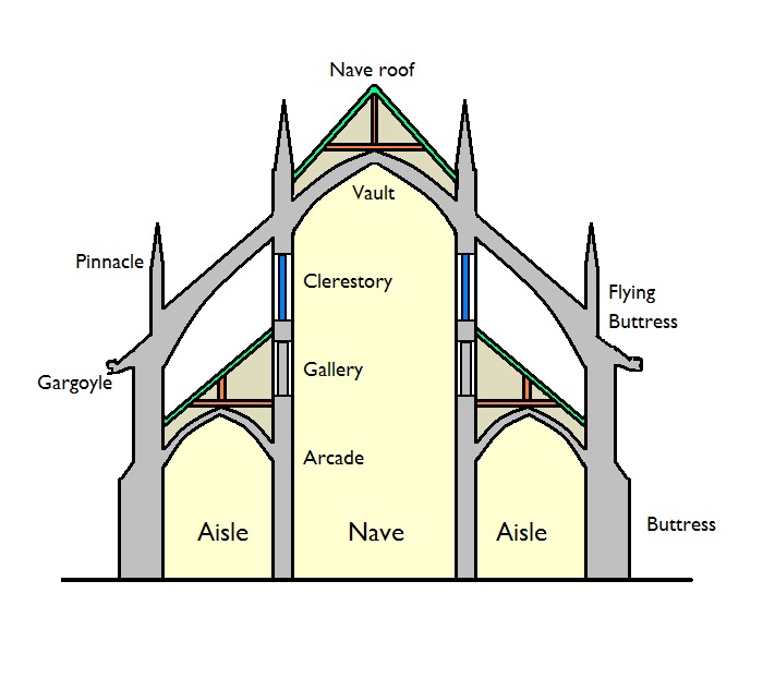 deambulatory, alternating “strong” and “weak” pillars between the first and second aisles