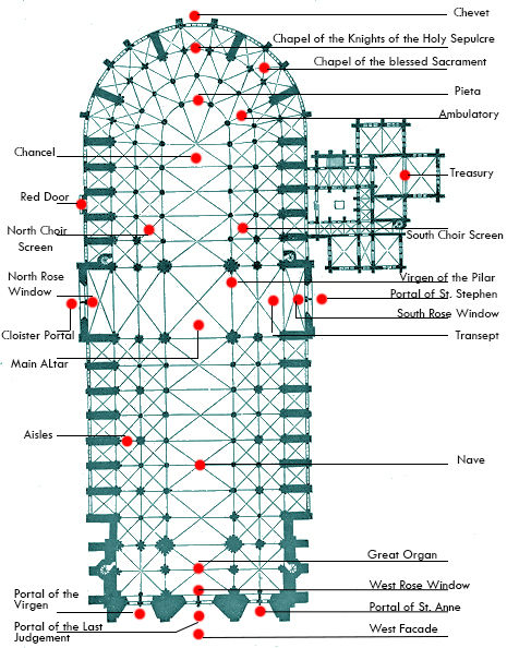 The first anonymous builder began with a double side aisle plan without a salient transept (the same plan