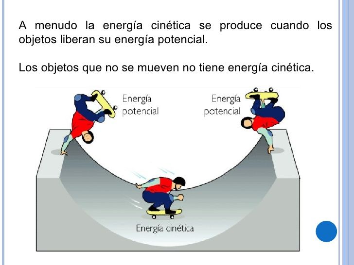 energia cinetica: . La energía cinética depende de la masa y la velocidad del objeto según la ecuación