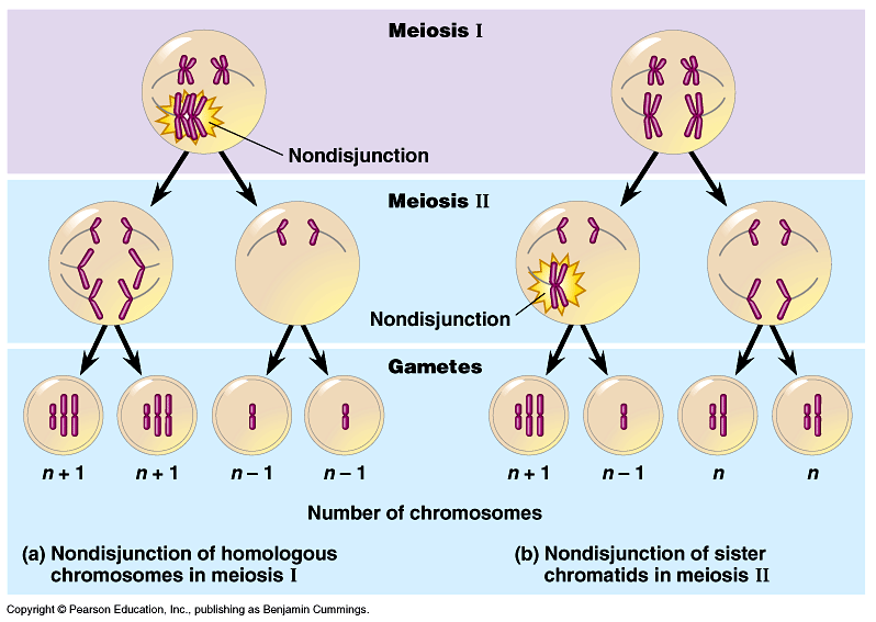 Chromosomes fail to spearate during meiosis I or Meiosis II