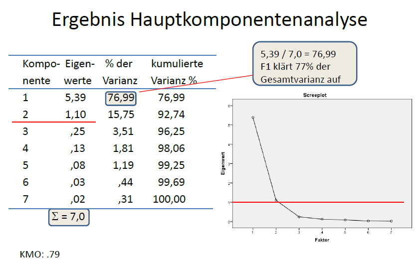 - Scree-Test/Screeplot: Eigenwertverlauf: