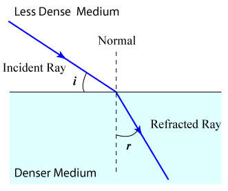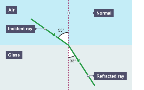 If an incident ray passes from one medium into another, the angle of refraction of the ray is affected by the refractive index of the material.