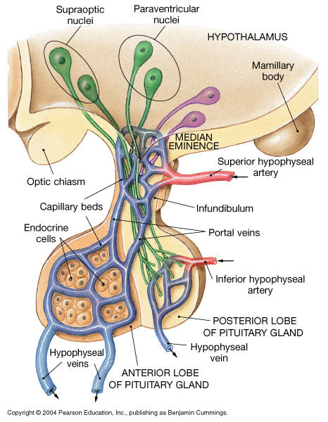 Hormone secretion regulated by thalamus and by feedback loops from circulating hormones