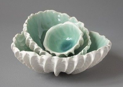 built or slip cast vessels inspired by marine life Gp 2 & 3: pinch pot sea urchins & clay / plaster cast