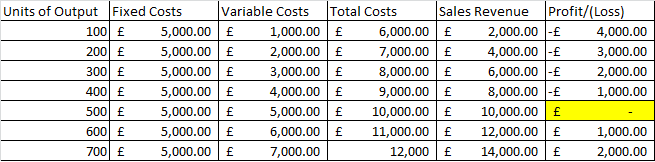 variable costs. Break-even analysis will be