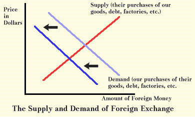the price level falls because our exports are cheaper