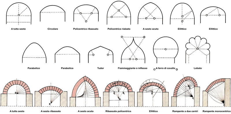 L'arco è una struttura bidimensionale e viene spesso utilizzato per sovrastare aperture. Per costruire un arco si ricorre tradizionalmente a una particolare impalcatura lignea, chiamata centina.
