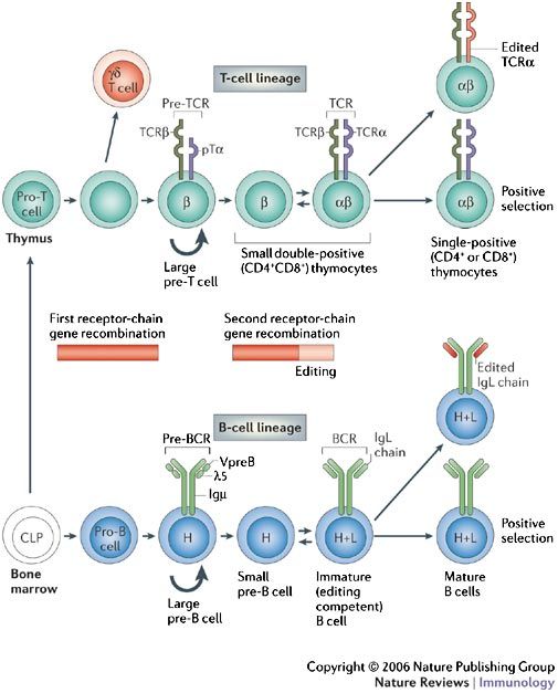 Lymphocyte: T cells( thymus ), B cells( bone marrow )