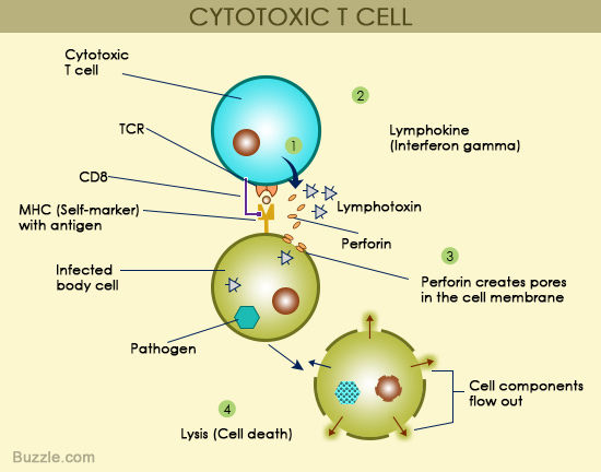 CD 8: cytotoxic T cells attack * infected host * cancerous host cells * foreign cells from outside