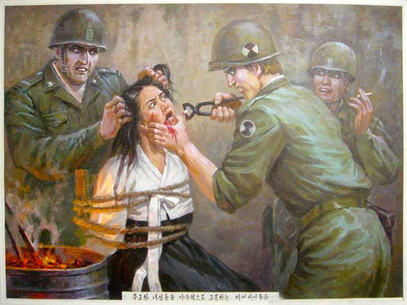 A poster made by the Korean's showing how the US army treated the