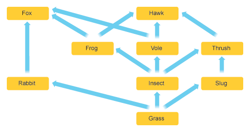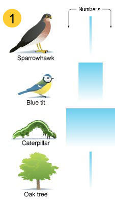 are then eaten by secondary consumers like sharks. You now have a food chain!