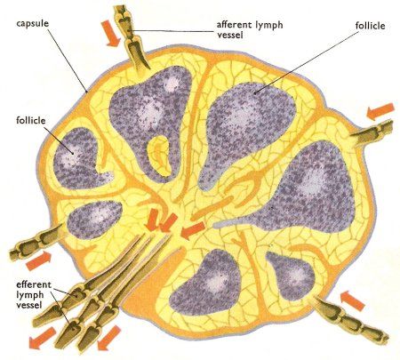 Within are collections of specialised white blood cells that filter any harmful particles out, such as bacteria and viruses