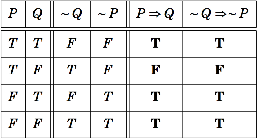 PROPOSITION : P → Q is logically equivalent to a ~Q → ~P