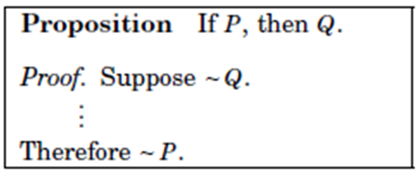 use when it’s too hard to prove using direct method. (eg: p is more complicated than q)