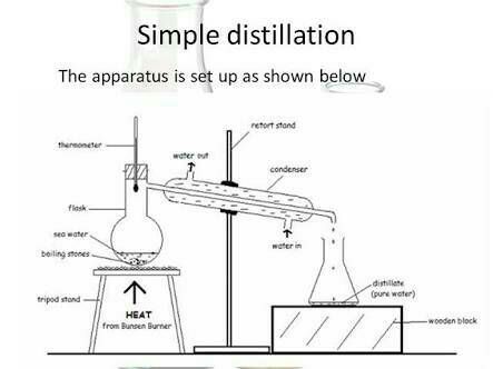 Step 2: Use simple distillation to separate the water and alcohol NOTE: Heat to 78°C because alcohol's boiling point is 78°C (After step only water, AgCl, pebbles and styrofoam beads)
