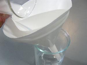 Using a tweezer or gloves picked-up the Pebbles from the beaker. What will remain in the filter is the AgCl.