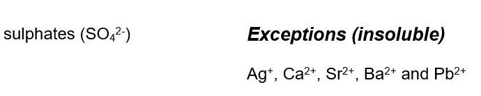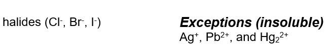 Solubility Rules Mind Map: Ions that form soluble compounds and exceptions that form insoluble compounds.